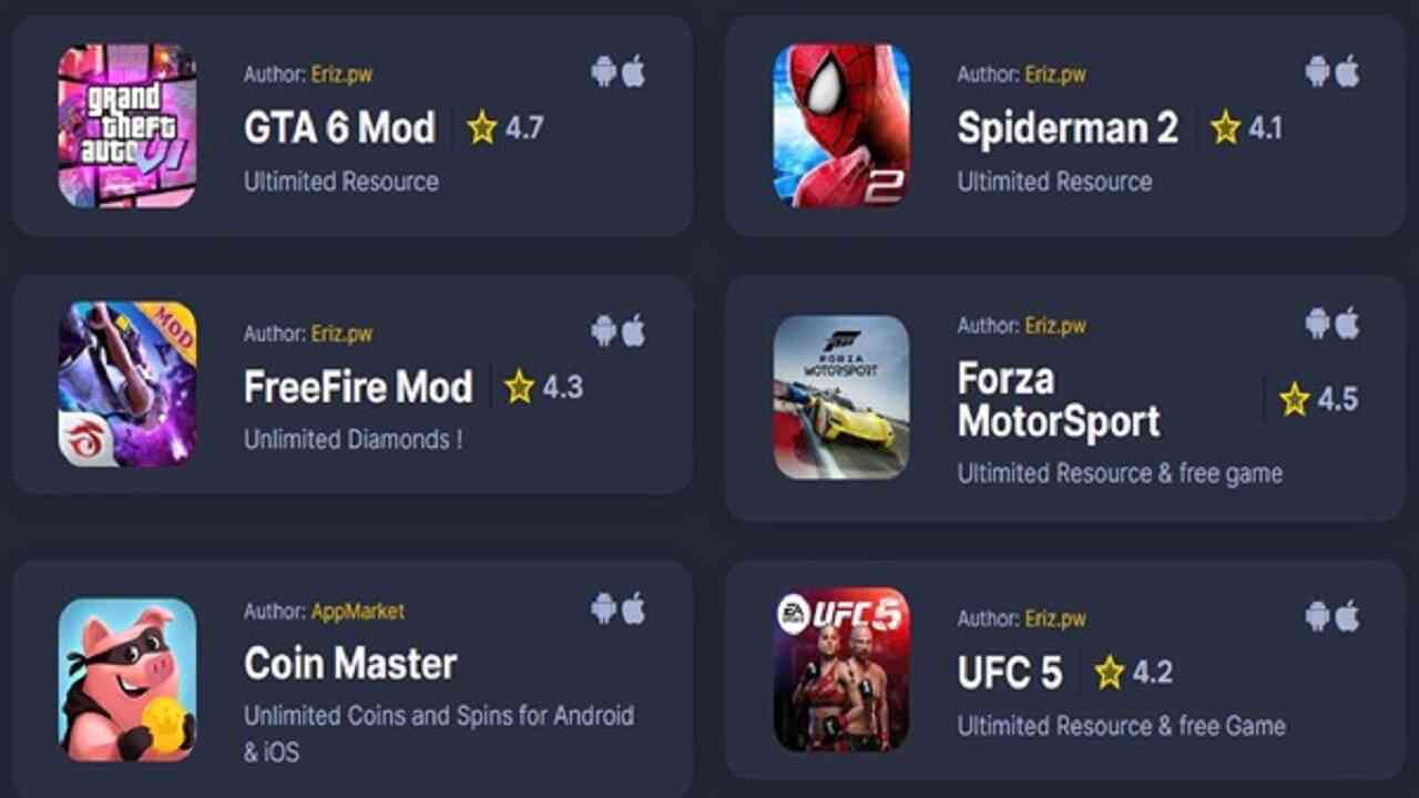Eriz.pw features a straightforward and user-friendly interface designed for ease of use. The home screen showcases popular categories, including games, apps, media, and tools, with an intuitive navigation system that allows users to browse or search for specific content quickly.